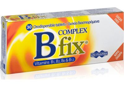 Το B Complex fix είναι ένα συμπλήρωμα διατροφής που συμπληρώνει τις ανάγκες του οργανισμού σε μια ποικιλία βιταμινών Β. Τα συστατικά που περιέχει το βοηθούν στο να συμβάλλει στη φυσιολογική λειτουργία του νευρικού συστήματος και των μεταβολικών διεργασιών που αποσκοπούν στην παραγωγή ενέργειας. Επίσης, η περιεκτικότητά του σε Βιταμίνη Β1, Β2, Β6 & Β12 ωφελεί τη φυσιολογική ψυχολογική λειτουργία και τη μείωση της κούρασης και της κόπωσης.