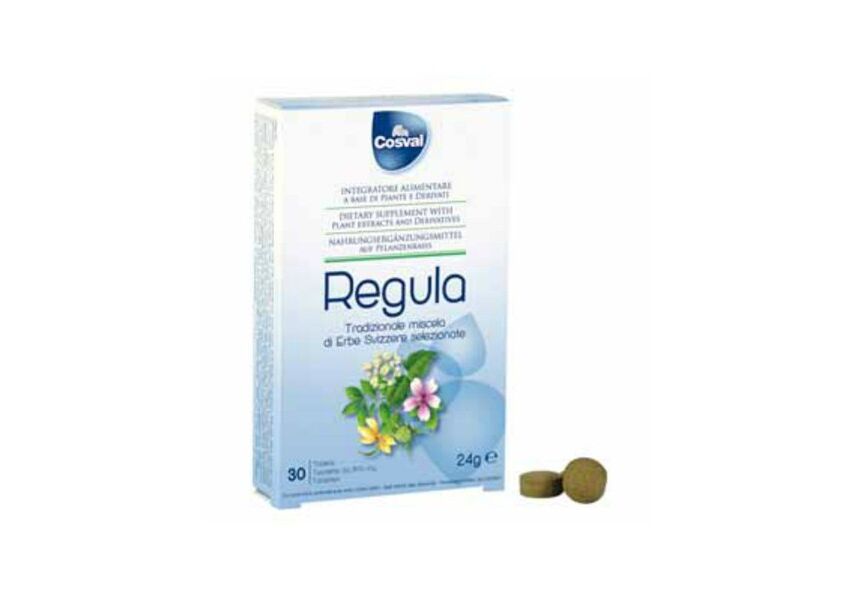 Το συμπλήρωμα διατροφής Regula της Cosval είναι ένα φυτικό σκεύασμα που περιέχει ειδικό μείγμα βοτάνων με καθαρτική δράση για την αντιμετώπιση της δυσκοιλιότητας.