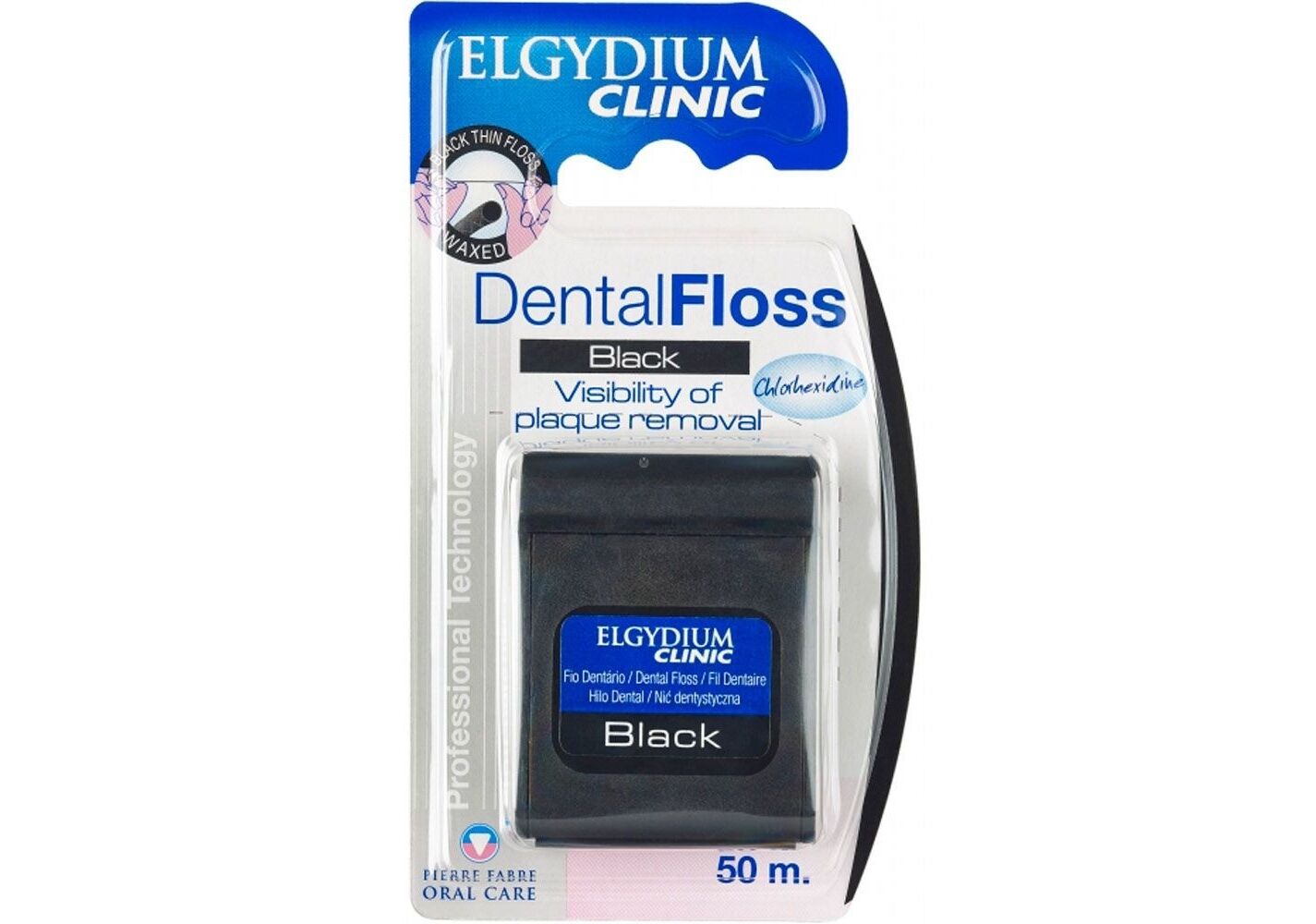 Το Dental Floss Black της ELGYDIUM είναι ένα οδοντικό νήμα, με μαύρο χρώμα, ελαφρά κερωμένο και εμποτισμένο με χλωρεξιδίνη. Το μαύρο χρώμα έρχεται σε αντίθεση με την οδοντική πλάκα, κάνοντάς την πιο ορατή όταν απομακρύνεται. Μη αρωματισμένο.