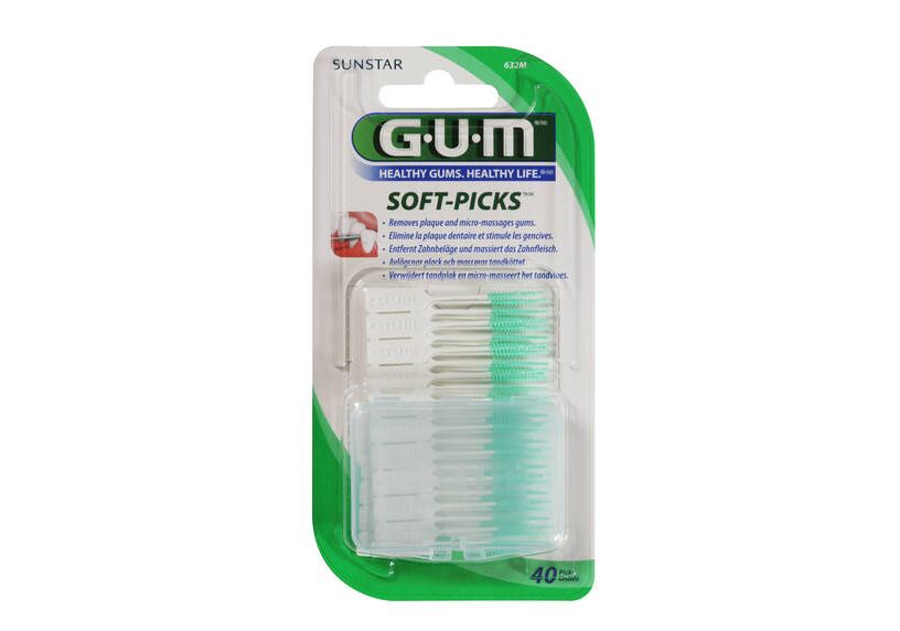 Τα GUM® Soft-Picks™ γλιστρούν με άνεση ανάμεσα στα δόντια για ασφαλή αφαίρεση της πλάκας και των μορίων της τροφής. Οι απαλές και εύκαμπτες τρίχες διεγείρουν και κάνουν απαλό μικρο-μασάζ στα ούλα για την προώθηση της κυκλοφορίας του αίματος και υγιών, σταθερών ιστών των ούλων.