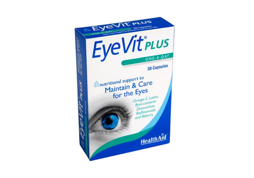Το EyeVit PLUS* της HealthAid είναι ειδικός συνδυασμός από τα παραπάνω διατροφικά συστατικά, με ευεργετική δράση για τη διατήρηση και ενίσχυση της όρασης, η οποία εξασθενεί με την ηλικία, αλλά και πολλών άλλων παραγόντων. Κατάλληλο σε περιπτώσεις ξηροφθαλμίας, νυκταλωπίας, αρχή καταρράκτη, εκφύλιση ωχράς κηλίδος, σε όσους εργάζονται σε P.C., φορούν φακούς επαφής, στους ηλικιωμένους και όσους κουράζουν τα μάτια τους, είτε λόγω εργασίας, είτε εκτείθενται πολύ συχνά σε εναλλαγές φωτός ή μπλε ακτινοβολία (κινητό τηλέφωνο, τηλεόραση, tablet).