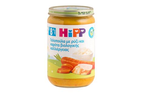 Hipp Βρεφικό γεύμα γαλοπούλα με ρύζι και καρότα βιολογικής καλλιέργειας Απο 8 μηνών, 220gr