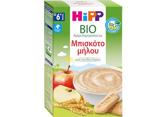 Βρεφική βιολογική κρέμα δημητριακών με μπισκότο μήλου.