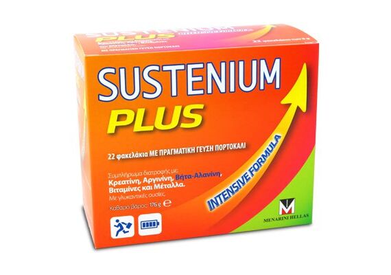 Το συμπλήρωμα διατροφής Sustenium Plus περιέχει Κρεατίνη, Αργινίνη, Βήτα-αλανίνη, Βιταμίνες και Μέταλα.