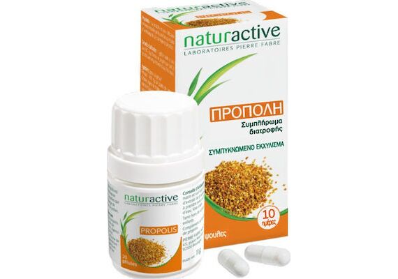 Eκχύλισµα πρόπολης: 400 mg σε σκόνη χαρουπιού, Zελατίνη. ∆ιογκωτικό µέσο: κυτταρίνη, νατριούχος καρβοξυµεθυλοκυτταρίνη, Αντισυσσωµατικός παράγοντας: στεατικό µαγνήσιο. (ανά κάψουλα)
