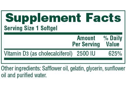 Περιγραφή: Κάθε μαλακή κάψουλα περιέχει 2.500 IU βιταμίνης D3 (χοληκαλσιφερόλη).