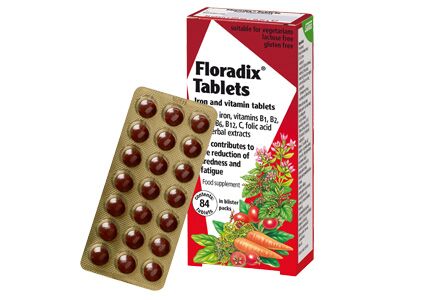 Η μέρα τελειώνει, όχι όμως και οι αντοχές σας! Τονωθείτε, με Floradix Tablets! Ιδανικό για εσάς που θέλετε ενέργεια σε μορφή… ταμπλέτας. Το Floradix Tablets περιέχει οργανικό γλυκονικό σίδηρο (ΙΙ), βιταμίνες Β2, Β6, Β12 και C που συμβάλλουν στη μείωση της κούρασης και της κόπωσης, καθώς και στη φυσιολογική λειτουργία των μεταβολικών διεργασιών που αποσκοπούν στην παραγωγή ενέργειας. Ο σίδηρος συμβάλλει στο φυσιολογικό σχηματισμό ερυθρών αιμοσφαιρίων (με την υποστήριξη των βιταμινών Β6 και Β12) και της αιμοσφαιρίνης. Επιπρόσθετα το φολικό οξύ συμβάλλει στην ανάπτυξη του μητρικού ιστού κατά την εγκυμοσύνη. Επιπλέον, η βιταμίνη C αυξάνει την απορρόφηση του σιδήρου.
